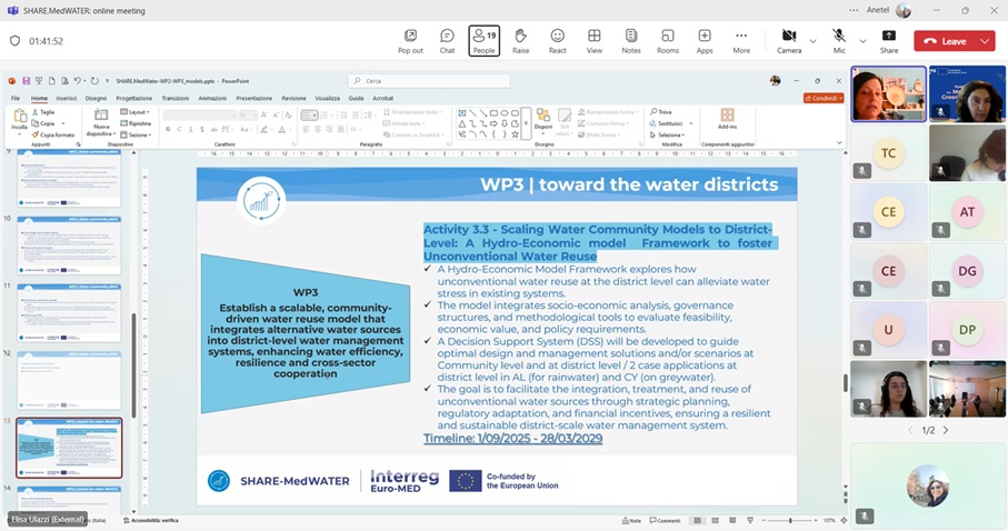 Strategic Harmonization and Resource Enhancement in the MEDiterranean: Advancing Water Management and Innovation through Non-Conventional Resources – SHARE.MedWATER project co-funded by Interreg Euro-MED Programme aims to tackle water scarcity by fostering the reuse of unconventional water sources through innovative treatment technologies, circular water strategies, and participatory governance models, promoting community-based approaches, knowledge sharing, and policy integration and supporting sustainable and resilient water management in the Euro-MED region.